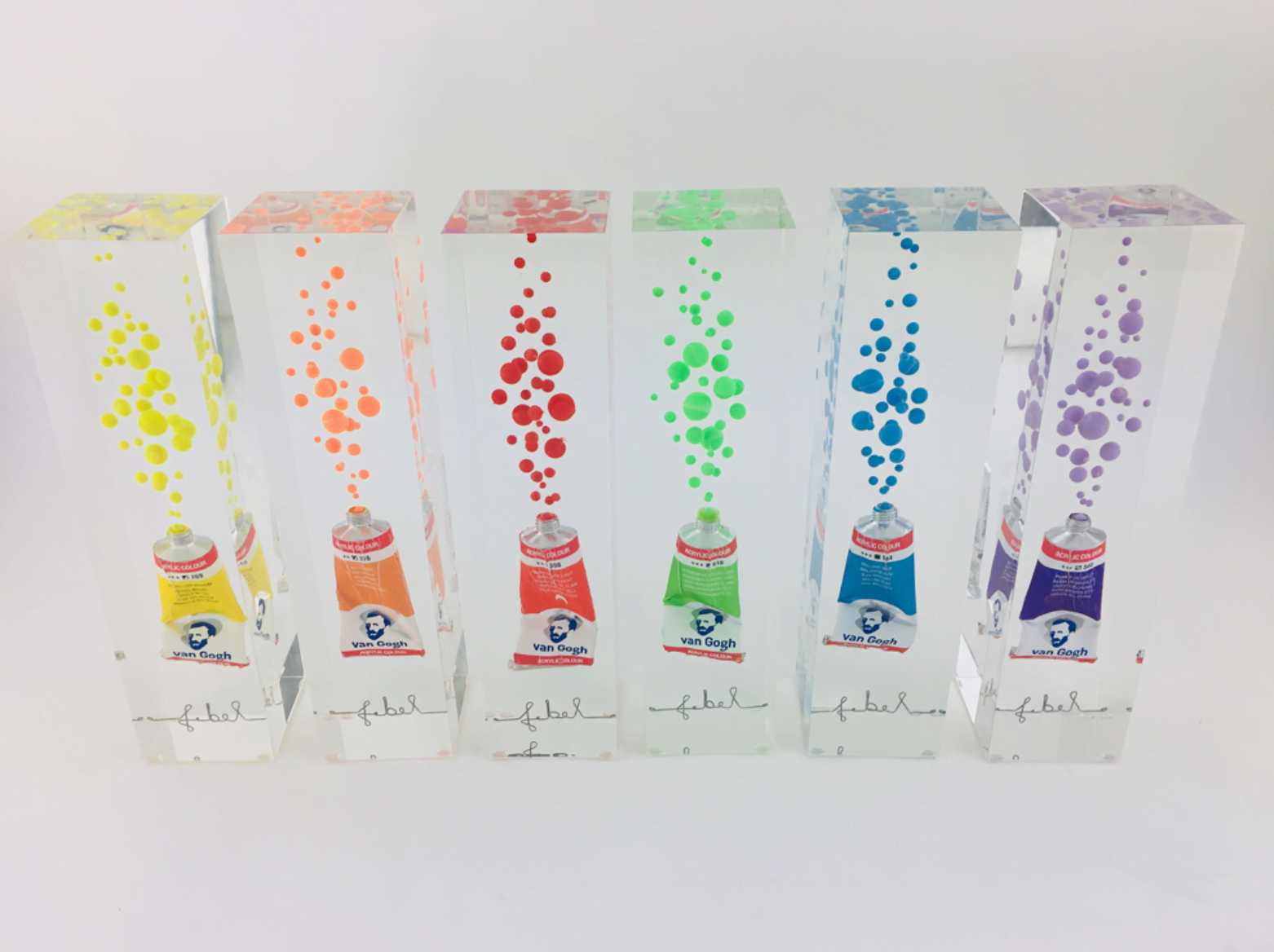 François Bel, quant à lui, explore une forme singulière de sculpture dans du verre en figeant des objets exposés dans du verre d’acrylique. Ses œuvres suspendent le temps, figent des objets du quotidien, et interrogent notre rapport à l’instant, à la mémoire, à la consommation. Inspiré par le pop art, le nouveau réalisme ou encore le dadaïsme, il propose une œuvre rigoureuse, spectaculaire et conceptuellement très forte.