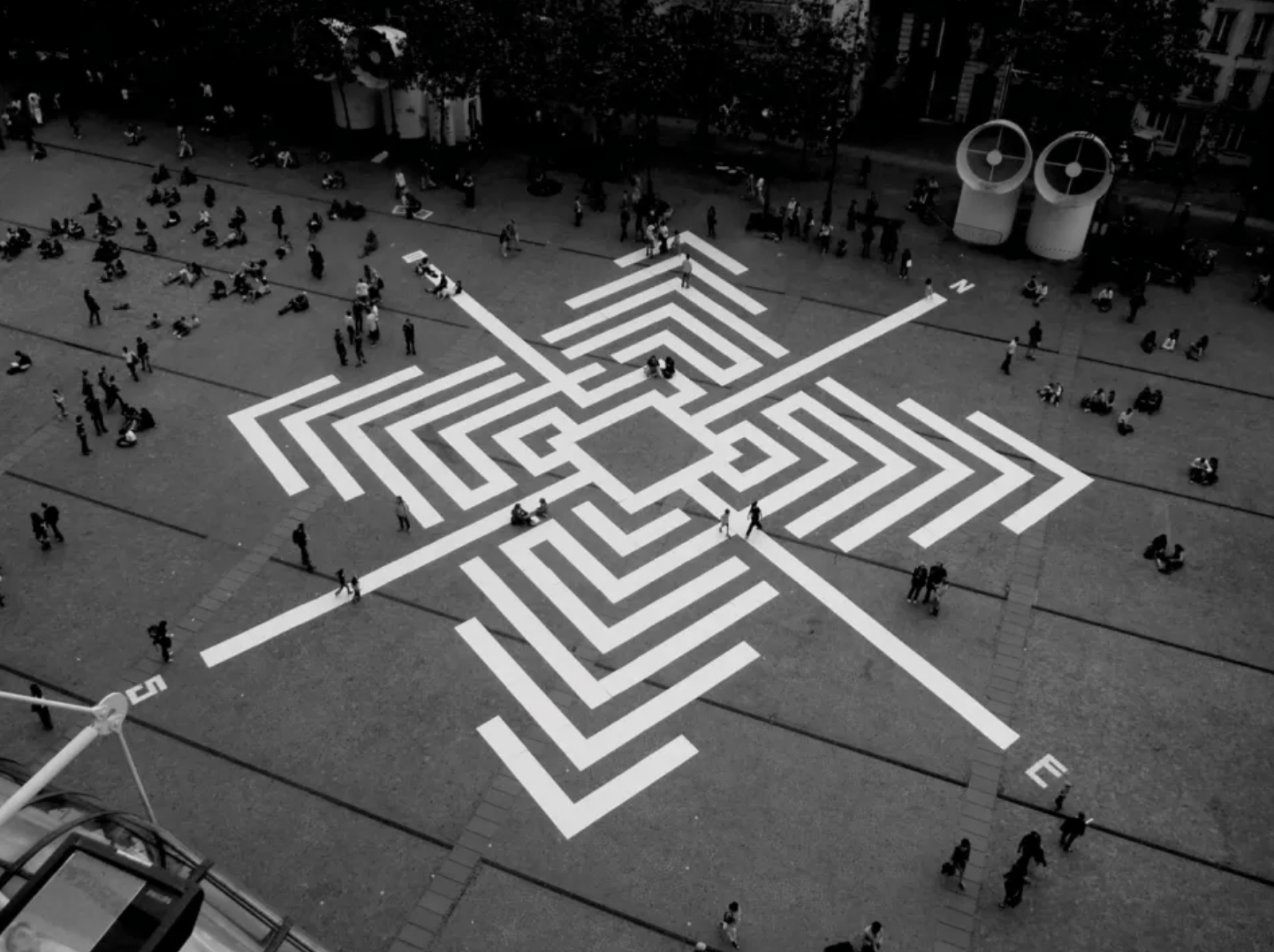 On pense souvent à juste titre à des œuvres monumentales réalisées par les artistes street art. Certaines fresques murales peuvent recouvrir la totalité de façades d’immeubles. Des artistes street art réalisent également des œuvres au sol, on pense notamment à Golif, start montante du street art Autrichien, qui a réalisé une fresque monumentale de 28 000 m2 sur le sol d’un parking dans la banlieue de Vienne. Cette fresque est si grande qu’elle est visible sur google map !