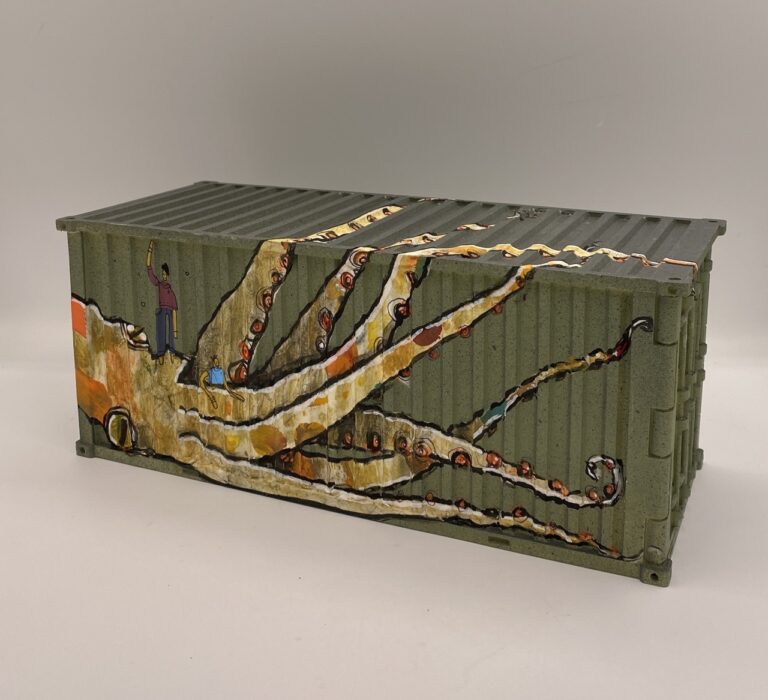 Chaque jour, un street artiste de la galerie est invité à réaliser une fresque sur une face du container
