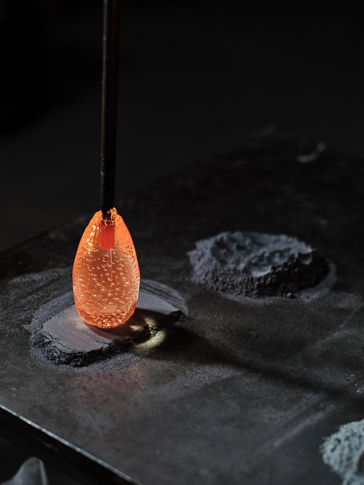 After completing a degree in applied arts with a concentration in ceramics, she went on to study painting at the École des Beaux-Arts in Besançon, where she earned her DNAP degree. Drawn to molten glass and its transparency, she specialized at CERFAV (European Center for Research and Training in Glass Arts), earning her CAP in hand-blown glass in 2003, followed by the title of European Glassmaker in 2004. She rounded out her training through numerous studio experiences, notably in Baccarat, in Bréhat with Xavier de Mirebeck and Vincent Breed, in residence at the Carmaux Glass Museum, and in the Czech Republic at Ajeto. She opened her studio in Beaucaire in 2009.
