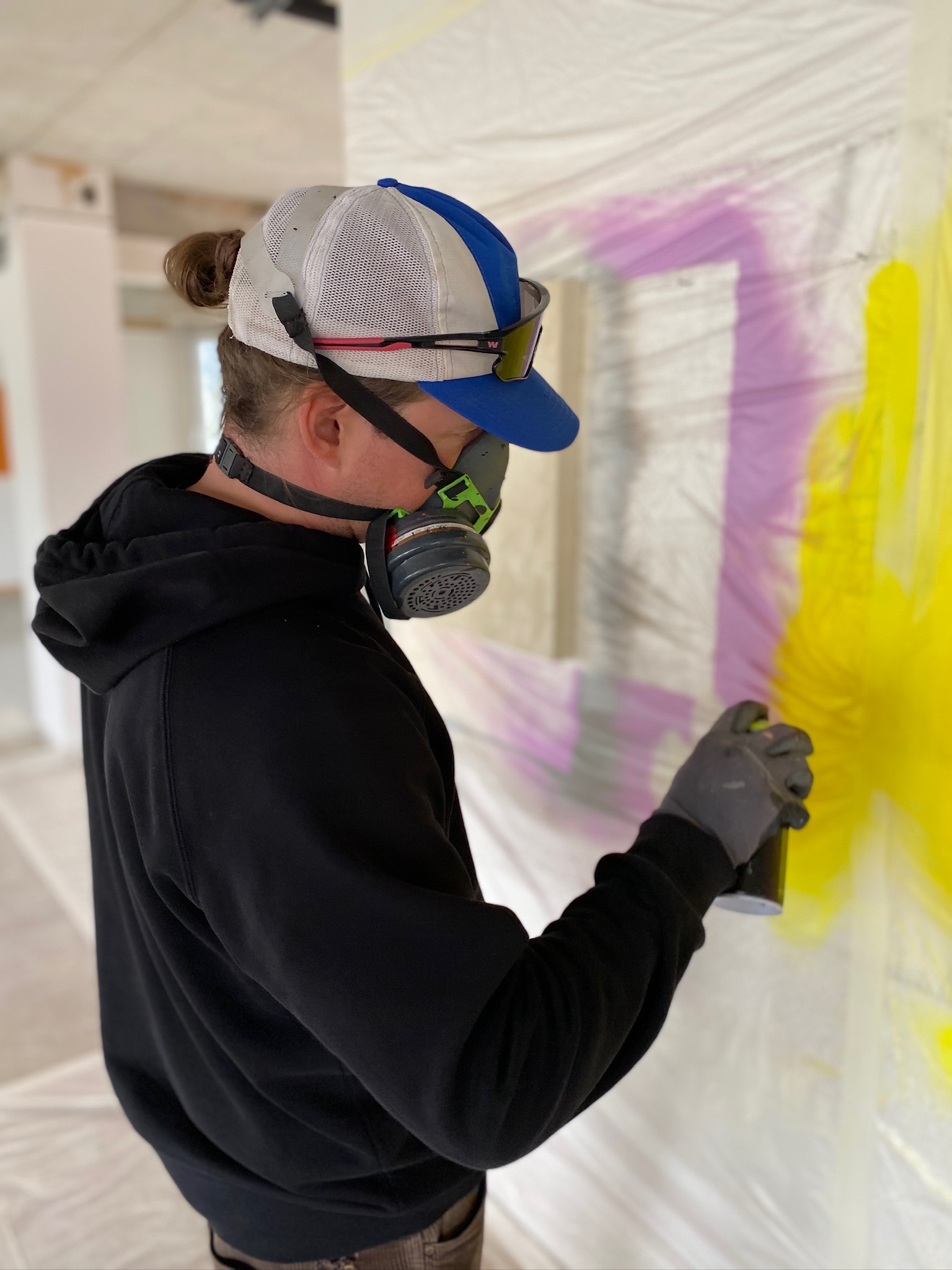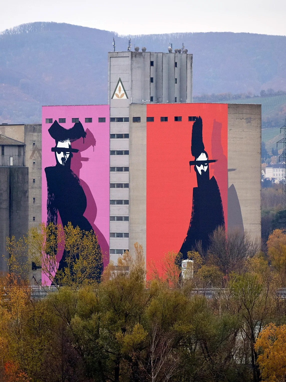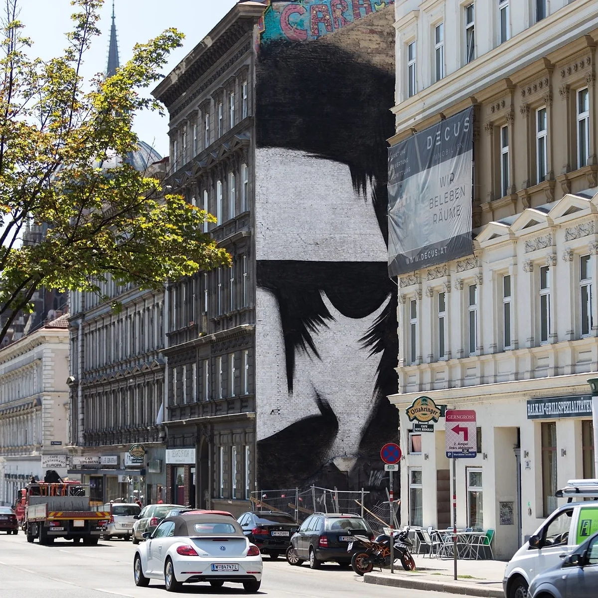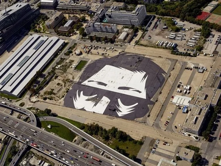 Golif est un artiste autrichien que rien n’arrête. Il aime les défis, les surfaces toujours plus grandes : une façade d’entrepôt de 600 m2, un sol de 28.000 m2 et bien d’autres fresques monumentales.