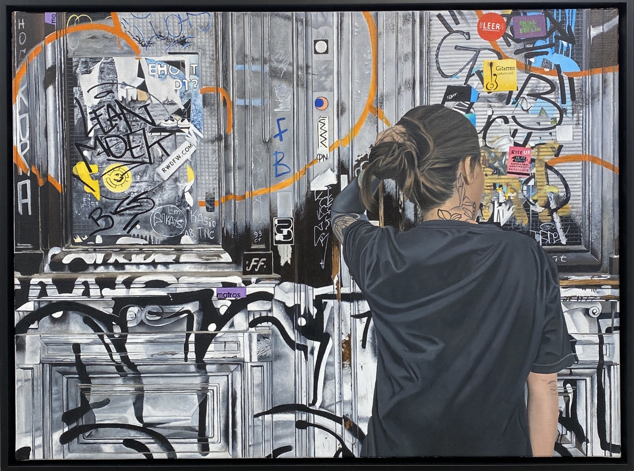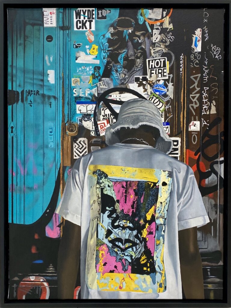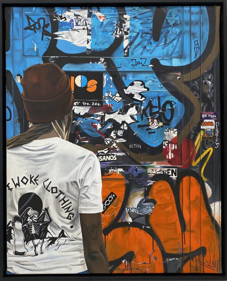 Nicolas Clézio fait partie de ces virtuoses de la technique. Elle est tellement parfaite qu’elle en devient parfois déroutante. Certains artistes comme Dali par exemple, l’utilisait pour nous plonger dans un univers fantaisiste et surréaliste. Clézio, lui, a décidé de la mettre au service de quelque chose de bien réel : le tag vandal, le graffiti et la culture hip-hop. Il met en lumière, révèle la beauté de ce que les gens trouvaient moche dans les années 60. Ses toiles sont de vraies confrontations : la représentation dans les règles de l’art de morceaux de rue délabrés et graffés. Il parvient à réunir deux univers diamétralement opposés : la peinture classique et le graff.