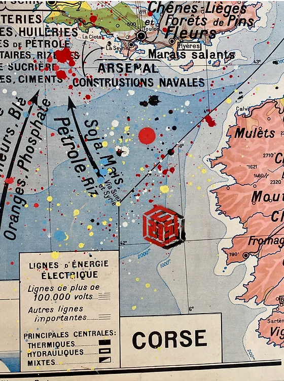 Pochoir sur carte de géographie