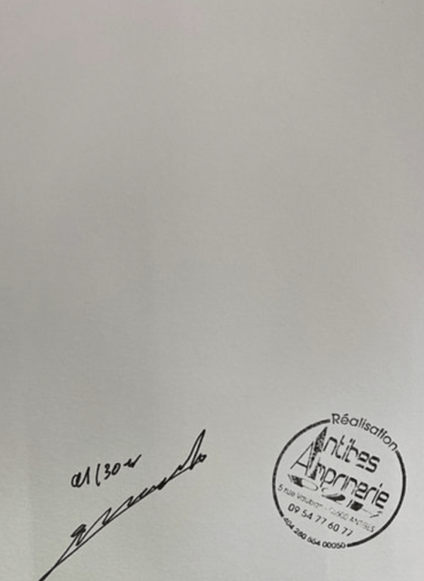 Numérotée et signée – 30 exemplaires tous formats et supports confondus – accompagnée d’un certificat d’authenticité