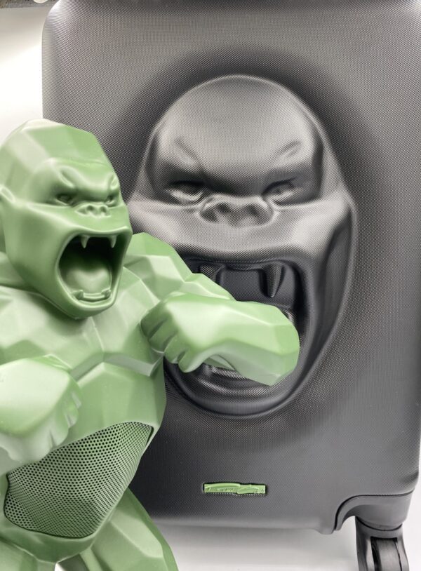 Le Kong est accompagné de la valise cabine « Kong Escape » : accessoire officiel conçu par l’artiste aux dimensions d’un bagage cabine.