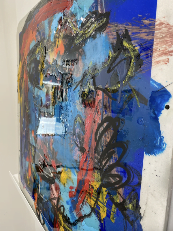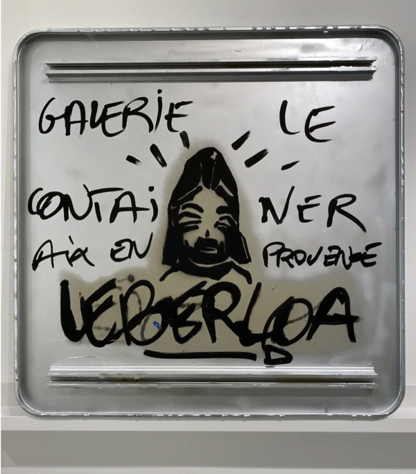 Technique mixte sur un panneau de signalétique
